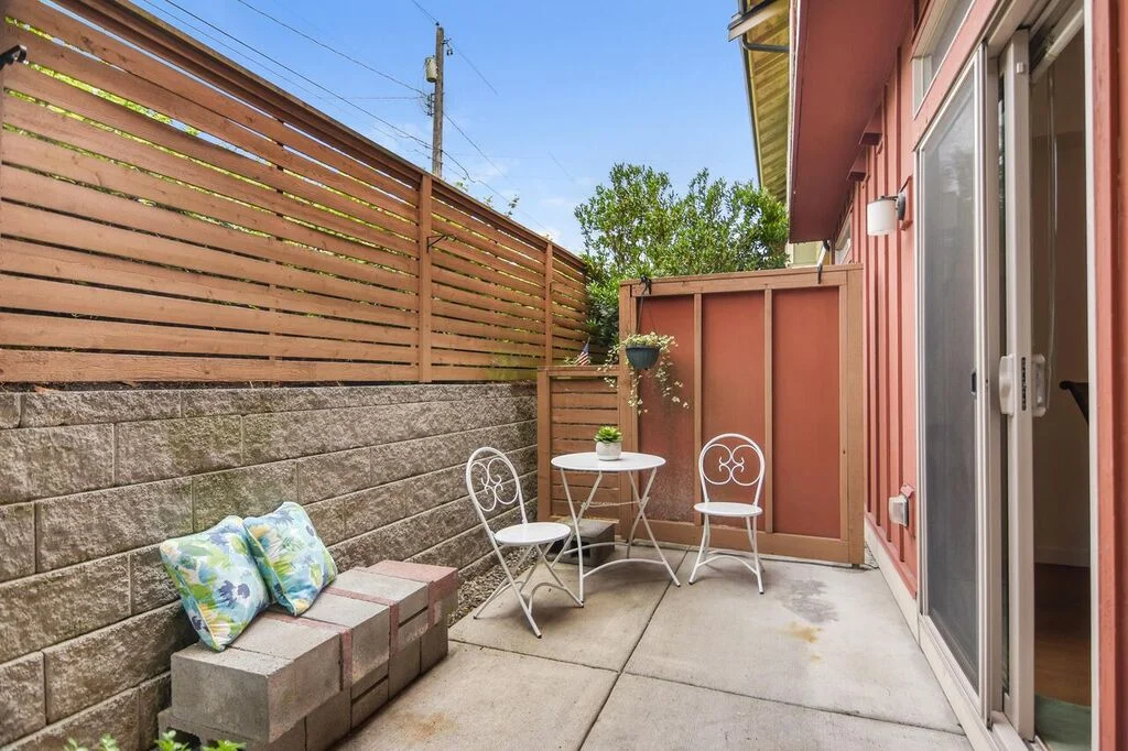In traditional townhouse design, this home is built on 3 levels: an entry and parking level, living and dining level with a patio and half bath, and at the top a quiet, private floor where you'll find vaulted ceilings, a spacious landing (lit by a skylight!) perfect for an office or additional sitting room, a bedroom and separate full bath, laundry, as well as a lovely suite featuring a larger bedroom and second full bath.