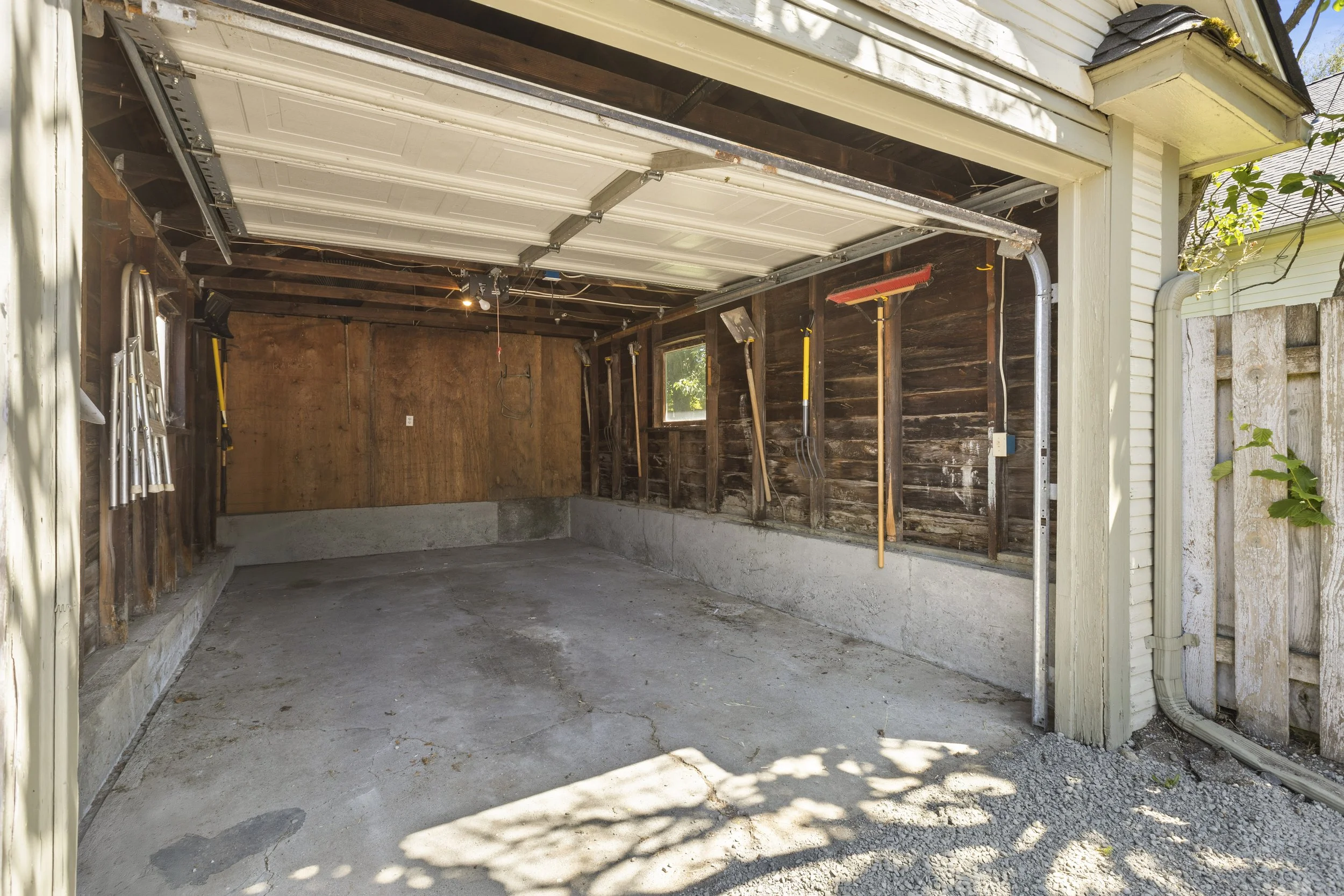 The single-car detached garage opens to the alley on the south side of the lot. This is the very alley where the neighbors come together for an annual dessert potluck on National Night Out—a perfect way to start getting to know people when you’re new. The garage is cleared out and ready for your car or for garden tools and a workshop space.