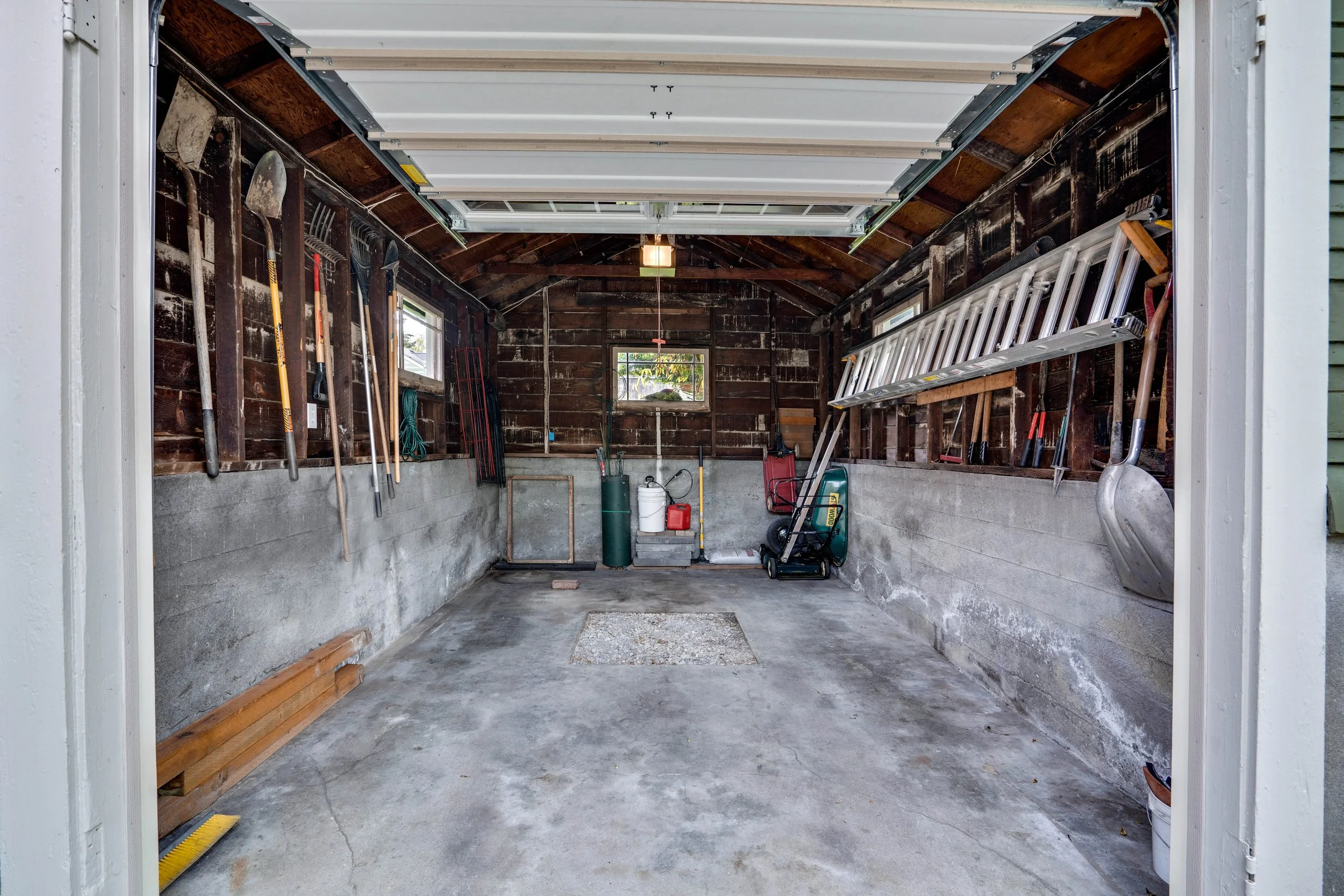 This carriage house style, single-car garage faces N. Junett Street. A new, automatic door opens to a space complete with an outlet for plugging in a vacuum and cleaning out the car. Park inside and out on the paved driveway.