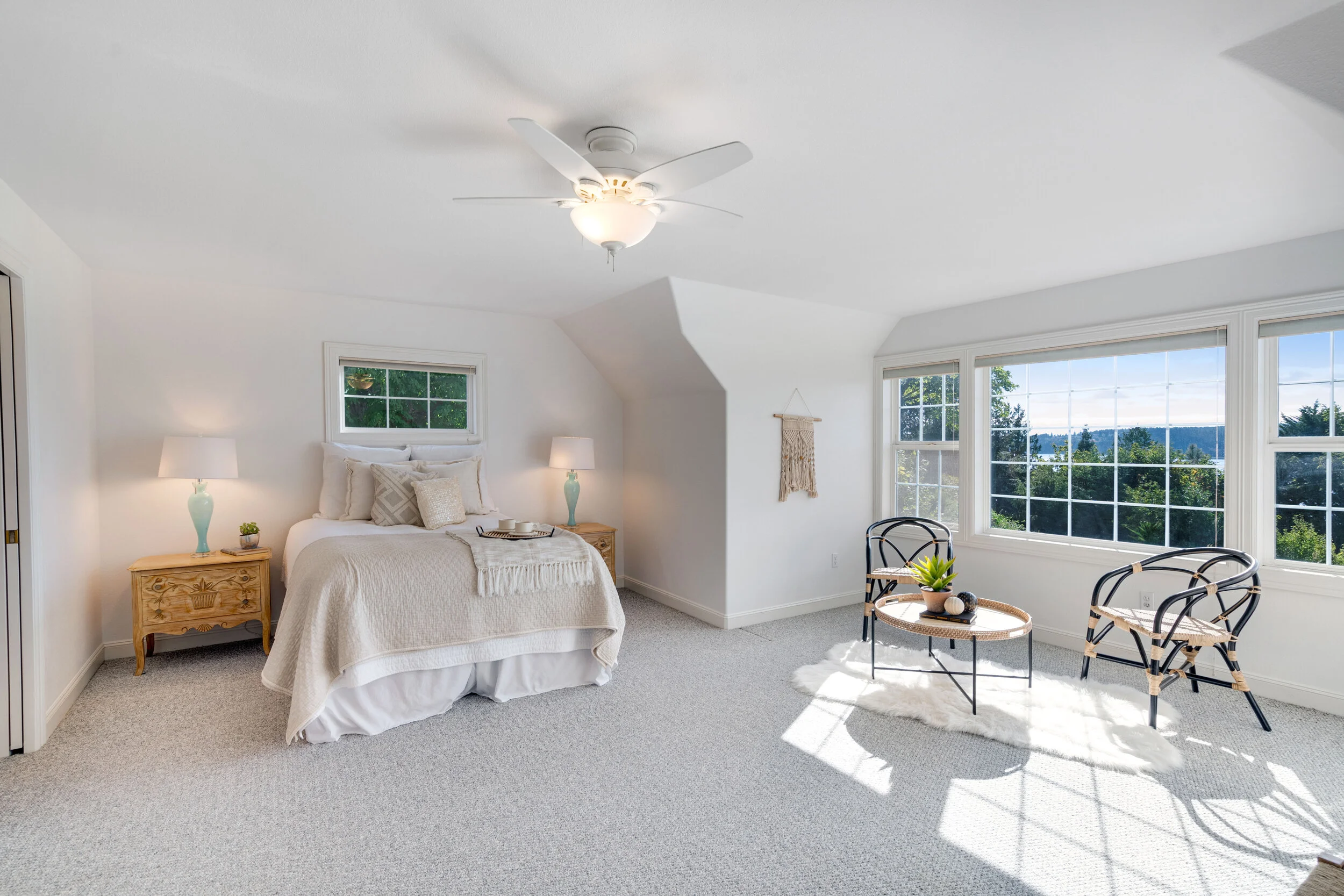 Take the first right at the top of the stairs for this second upstairs bedroom with a view of its own. Coved ceilings keep this spacious bedroom feeling snug. Look out for Day Island and The Narrows Bridges stretching over the sound through the north window. Whether you have a child at home, or love to ask family and friends to stay over, this is a welcoming room.