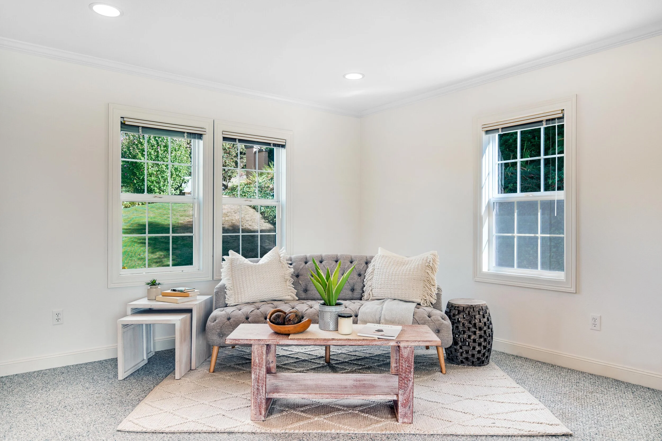 Consider creating a quiet den, office, or even guest quarters in this space off the main living room. Windows bring in natural light, and the doorway to the main floor 3/4 bath is just outside the frame on the left.