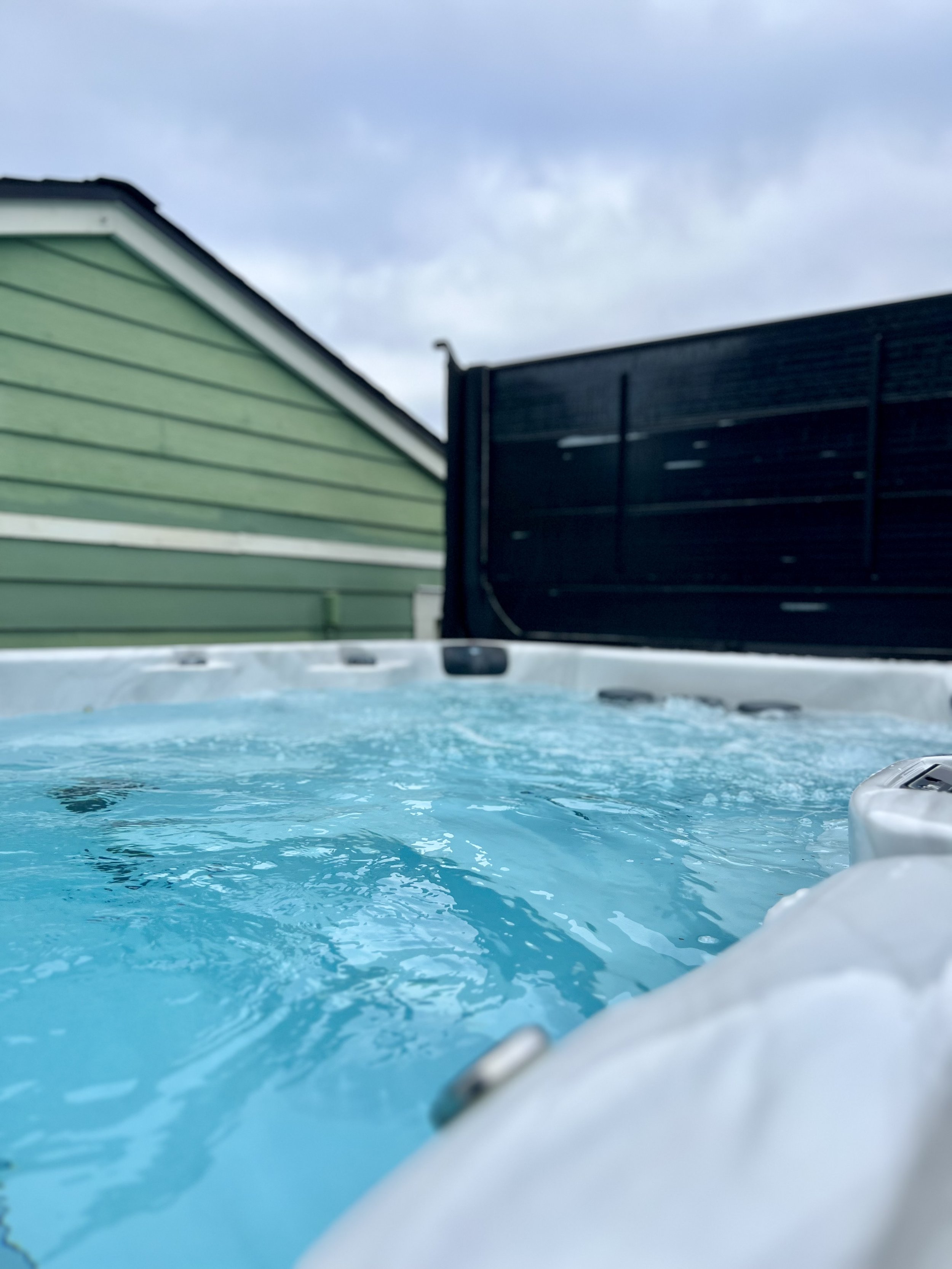 “I put a lot of intention into designing the back courtyard to create a space with tranquility and privacy. It’s the perfect place to end the day — whether exercising in the swim spa, enjoying a deep massage in its hydrotherapy seats, or visiting with friends over a glass of wine on the back porch or patio.”
