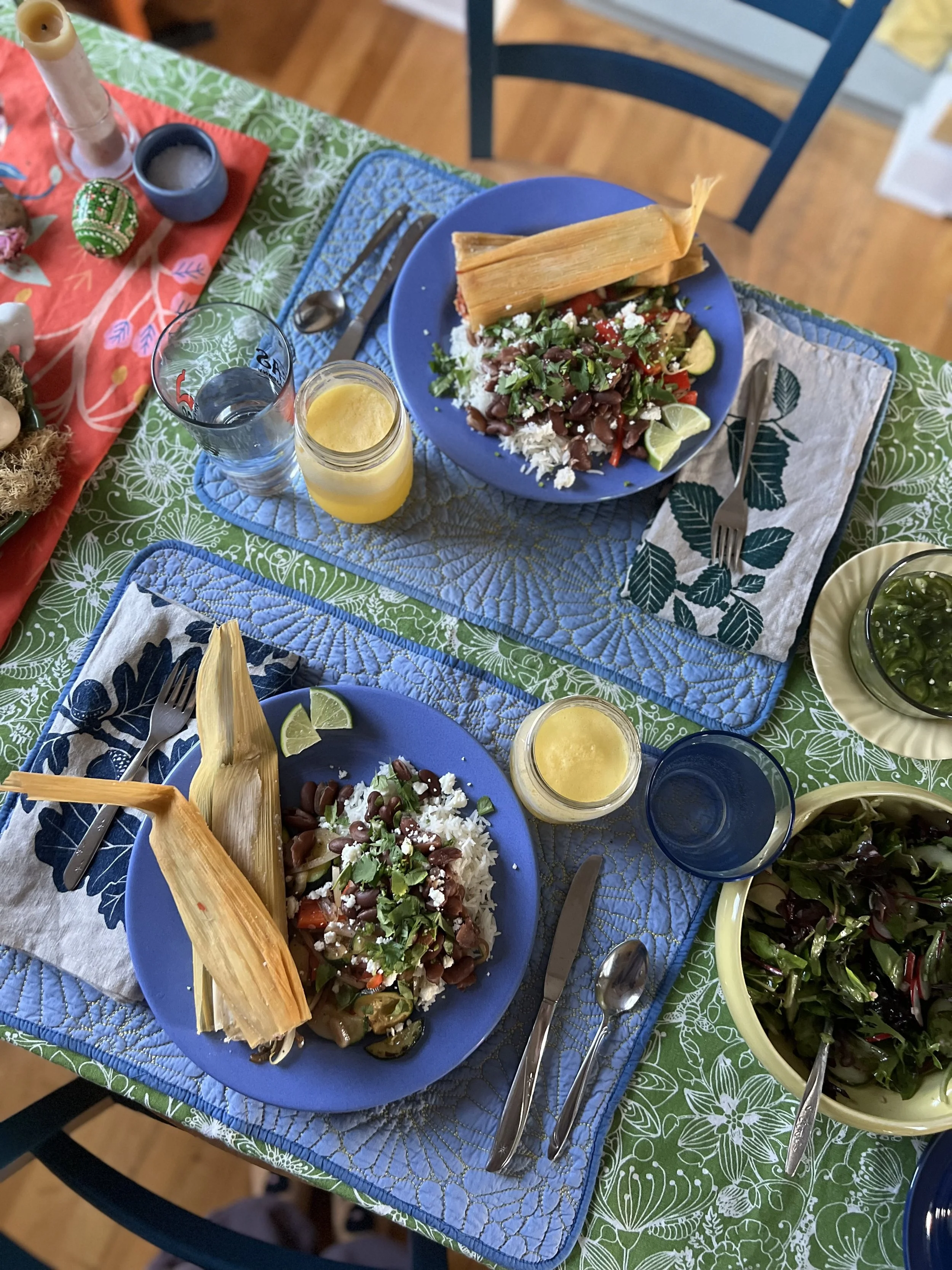 Tamales can be your whole meal, or make some rice, beans, and salad for a colorful plate.