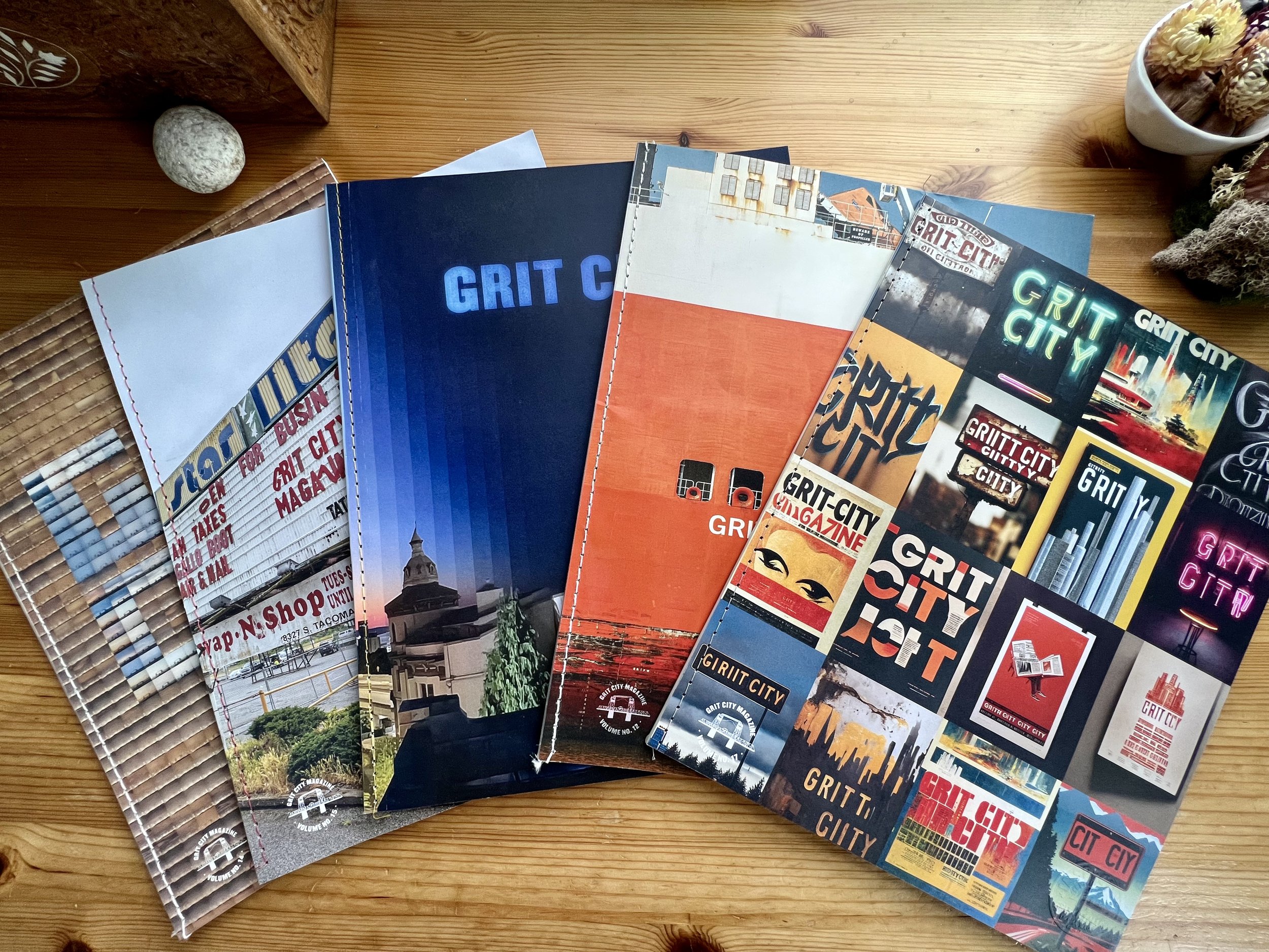 You can follow Grit City Magazine on the socials for news and perspectives and nice photos. Go ahead! But if you can find the funds, each dollar towards a hard copy is worth it. Reading the hard copy invites me deeper into Tacoma. I learn things about Tacoma’s past and present. I feel things about its people, and I usually laugh at something silly or irreverent. And there’s no scrolling, no urge to skim and move right along. Big, colorful, thoughtfully designed pages. Time for a cup of coffee and an article and a pause at the turning of the real, actual page. Relief. Every issue includes a poster by a local artist, so if you have proclivity for collecting, you’ll fit right in.