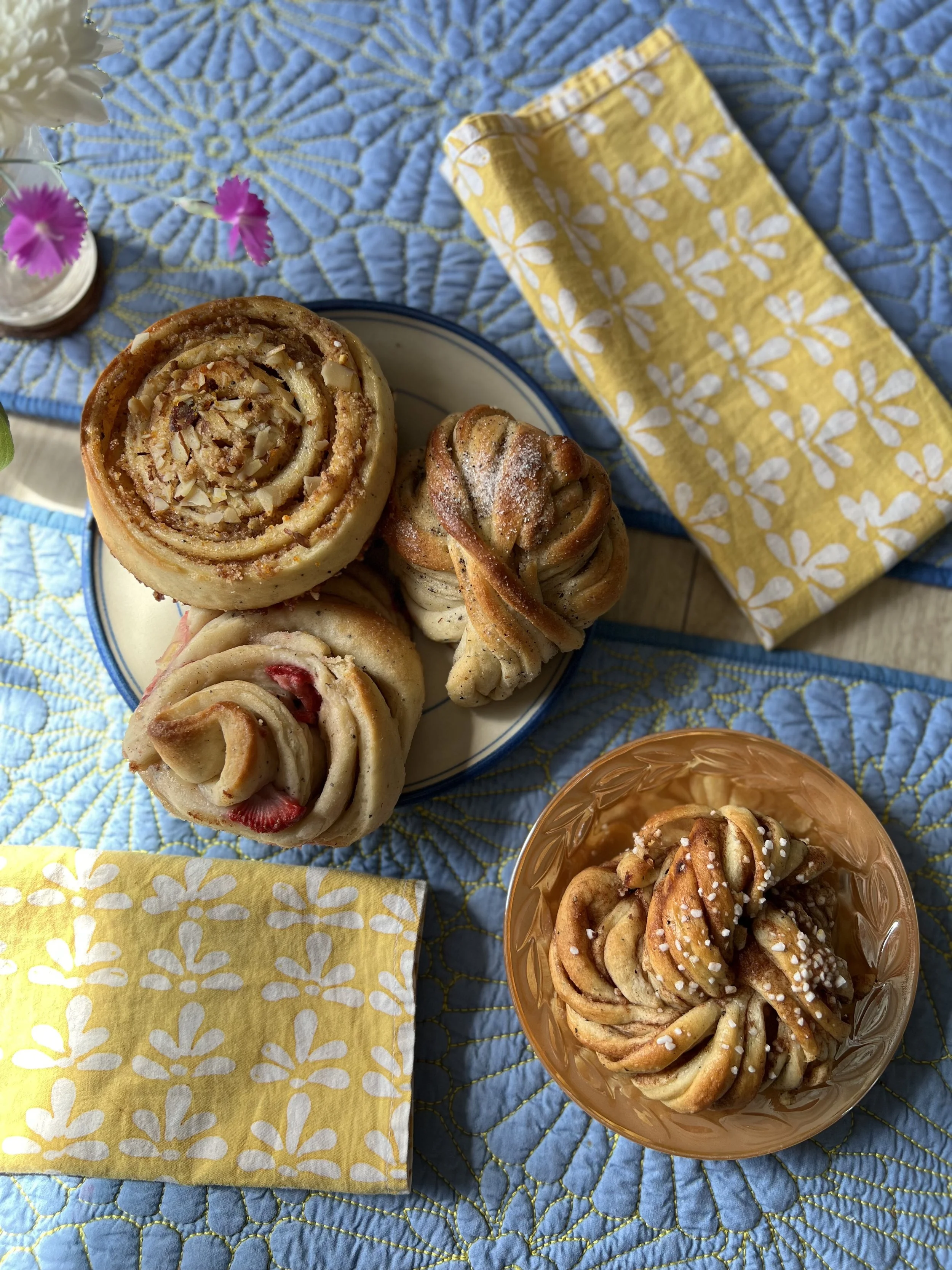 It’s okay if they grow, no problem, mostly we just want them to stay around. Pastries are an especially beloved food category in my life, and ones like this—not too sweet, with simple flavors, and homemade dough that stays tender even as it get that golden-brown glow—are especially welcome in Tacoma, a city that really could benefit from a richer bakery scene. We’ll leave you with this image of Midsommar Bakery’s Swedish style baked goods the cinnamon bun, cardamom bun, orange almond bun, and vanilla-strawberry bun.
